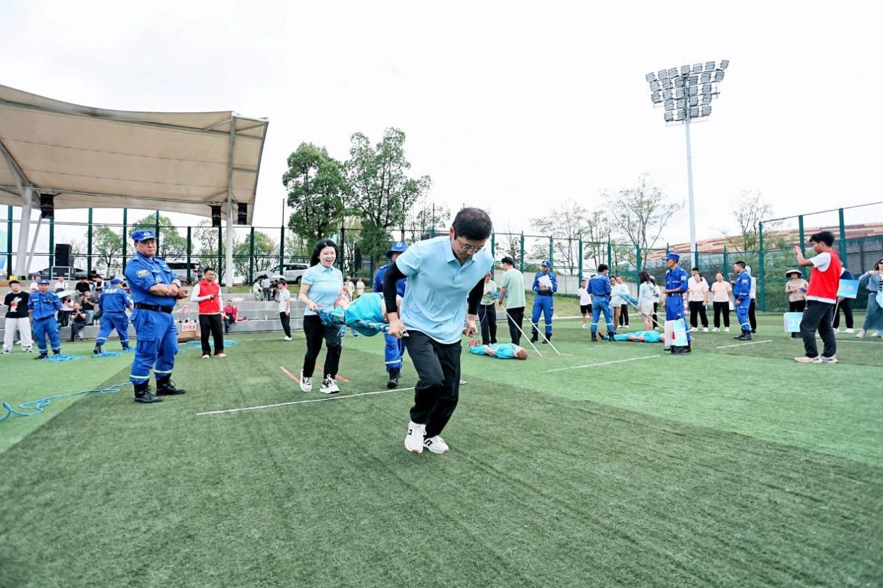 当天,来自全行30支基层分会及子公司代表队的540名职工,在一项项挑战中展现团队合作精神,在紧张激烈的赛场上展示活力,享受欢乐。本次运动会以“强意识 查隐患 保安康 促发展”为主题,通过寓教于乐、融学于趣的形式,设置急救侦查大考验、最强大脑、灭火英雄接力赛、生命律动挑战赛、抗洪堡垒建筑师、“同心协力”包平安、火线瞬连、急救先锋挑战赛、争分夺秒系安全、火场逃生大挑战等10个趣味竞赛项目。比赛现场,参赛选手们精神饱满、热情高涨、沉着应对、密切配合,充分展现了团队凝聚力和向心力。在激烈角逐中,参赛选手们动作娴熟规范,精准演示应急技能,充分展现了扎实的安全生产知识功底和团队协作能力,场内加油声和欢呼声此起彼伏,掌声不断。