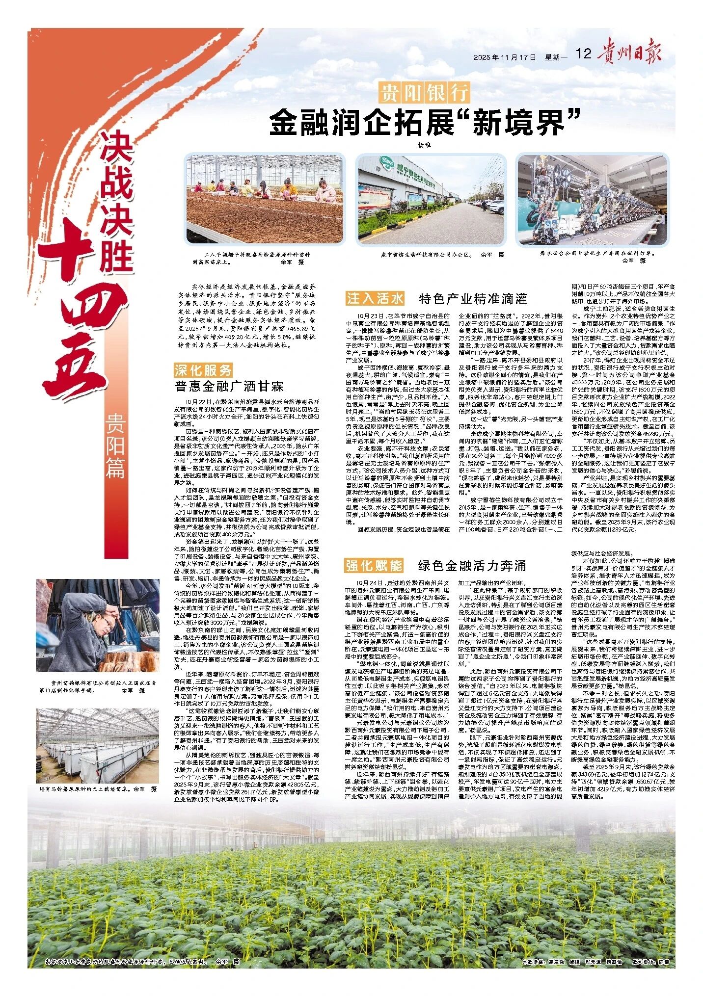 产业兴旺,是实现乡村振兴的重要基础;产业发展,是滋养农民美好生活的源头活水。一直以来,贵阳银行积极贯彻落实中央及省市有关乡村振兴工作的决策部署,持续加大对涉农贷款的资源倾斜,为乡村振兴战略的全面实施注入强劲的金融动能。截至2025年9月末,该行农业现代化贷款余额112.89亿元。